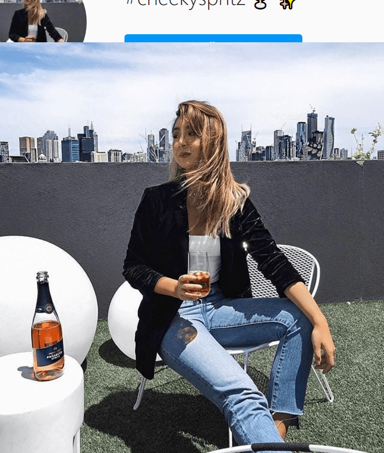 Posted on January 7, 2018February 5, 2021 by Padraic GuilfoyleKRISTY WU (@kristywho) Jacobs Creek alcohol/ethanol.#alcoholadvertising kristywho10/10 Summer evenings, rooftop views and Christmas prep with friends calls for a #cheekyspritz🍹✨@Proseccospritz#jacobscreek Share this: Click to share on X (Opens in new window) X Click to share on Facebook (Opens in new window) Facebook Like Loading... Related